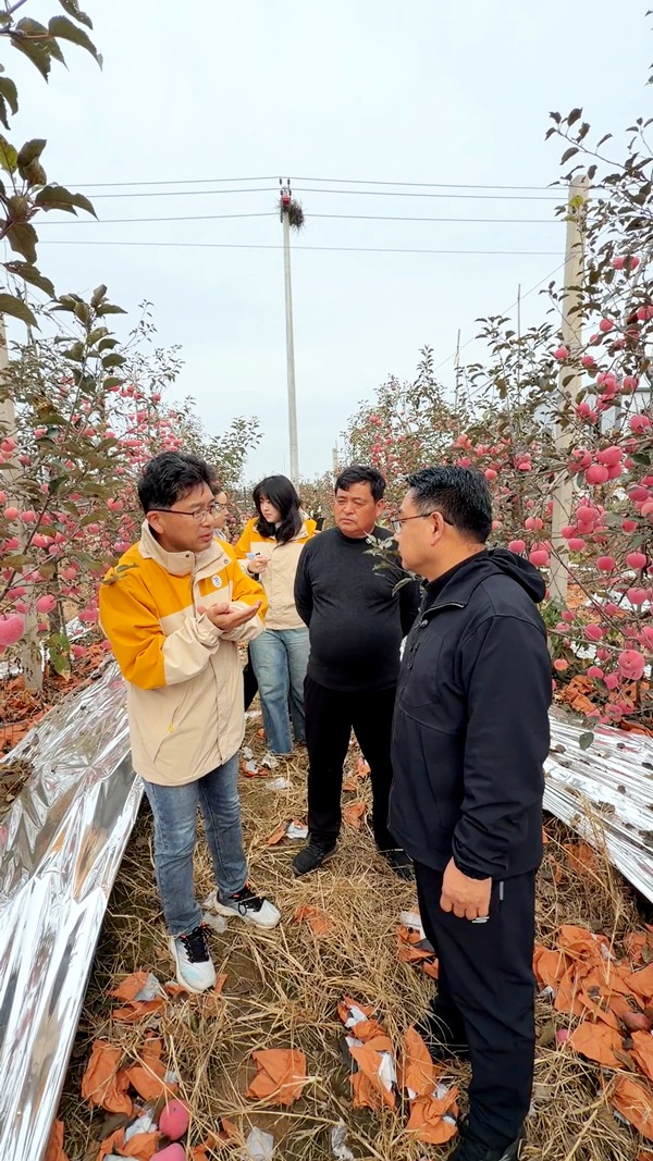 最后一站,選品團(tuán)來到官道鎮(zhèn)大解家村,詳細(xì)了解了圣杰果蔬專業(yè)合作社果園的機(jī)械化生產(chǎn)和水肥一體化技術(shù)應(yīng)用。“大解家村的蘋果種植大戶比較多,他們對蘋果種植有特別的情懷,但是不知道怎么干,不知道怎么高效干。通過我們這幾年的研究探討,形成了一套比較成熟的可行性經(jīng)驗(yàn),產(chǎn)量提高了,人力成本還節(jié)省了。”棲霞市官道鎮(zhèn)鎮(zhèn)長謝小軍介紹。