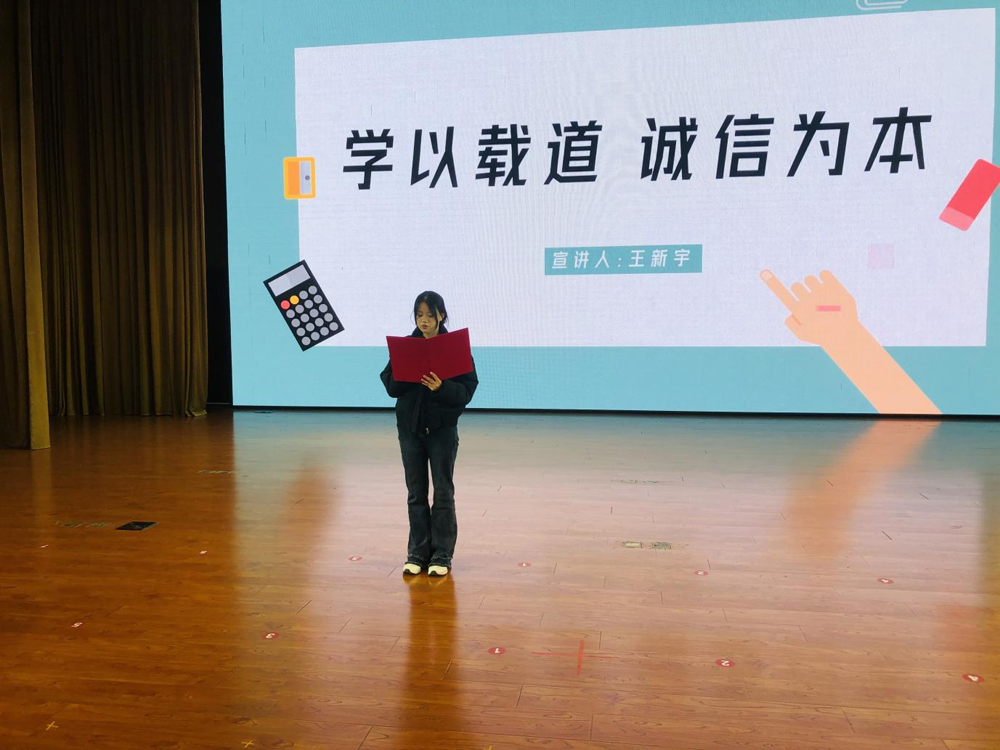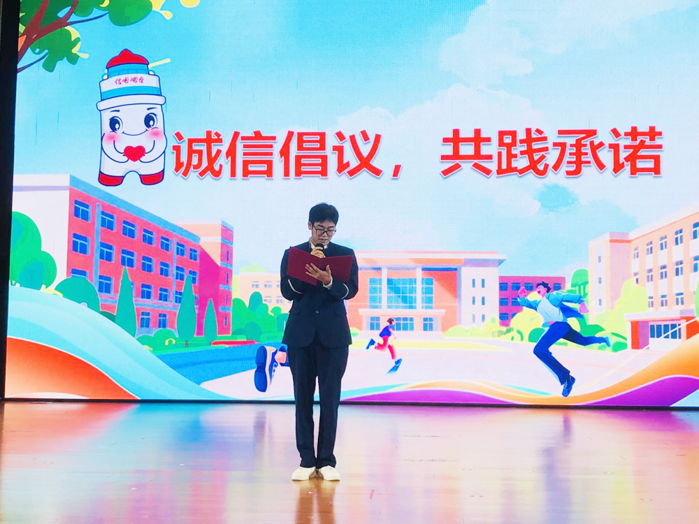 活動(dòng)最后,李家輝同學(xué)帶領(lǐng)全體人員宣讀《學(xué)生誠(chéng)信倡議書》:“我承諾,誠(chéng)信學(xué)習(xí),不抄襲、不作弊、不造假;誠(chéng)信消費(fèi),不逃票、不逃費(fèi),尊重每一位勞動(dòng)者的付出;守信于人,言而有信,對(duì)自己的承諾負(fù)責(zé),對(duì)集體的期望負(fù)責(zé),對(duì)未來(lái)的人生負(fù)責(zé)……”鏗鏘的誓言回蕩在會(huì)場(chǎng),是學(xué)子們對(duì)未來(lái)的鄭重承諾。