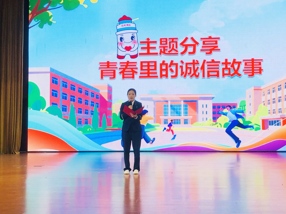 “青春里的誠(chéng)信故事”分享環(huán)節(jié)滿是真情實(shí)感,從學(xué)術(shù)成長(zhǎng)和職業(yè)實(shí)踐兩個(gè)角度,詮釋了青年一代的誠(chéng)信擔(dān)當(dāng)。王新宇同學(xué)分享了專業(yè)課學(xué)習(xí)經(jīng)歷:“曾經(jīng)為了交出一份完美的化妝課后作業(yè),想用PS軟件對(duì)瑕疵進(jìn)行模糊處理,但老師的一番話瞬間點(diǎn)醒我,她說(shuō)化妝是一門技術(shù),是一門誠(chéng)實(shí)的手藝,要服務(wù)于真實(shí)的人,而不是欺騙鏡頭,最終我把帶有瑕疵的作業(yè)交了上去,并請(qǐng)教老師攻克難點(diǎn),這堂課成為自己職業(yè)生涯的啟蒙課,時(shí)刻提醒自己要勇于認(rèn)識(shí)自己的不完美,要用誠(chéng)實(shí)的態(tài)度去學(xué)習(xí)和進(jìn)步。”馬林娜同學(xué)則分享了自己參加校內(nèi)鄉(xiāng)村振興助農(nóng)直播時(shí)的經(jīng)歷:“在選品時(shí),我將大櫻桃好果與次果分類挑出,不能僅憑好的說(shuō)詞去混淆大家視線,要做到實(shí)事求是,不同品種的產(chǎn)品都會(huì)邀請(qǐng)周邊人品嘗,然后結(jié)合自己的感受去完成直播,這讓我明白,在鏡頭前,手里舉的不是商品,而是一份沉甸甸的責(zé)任和信任。”